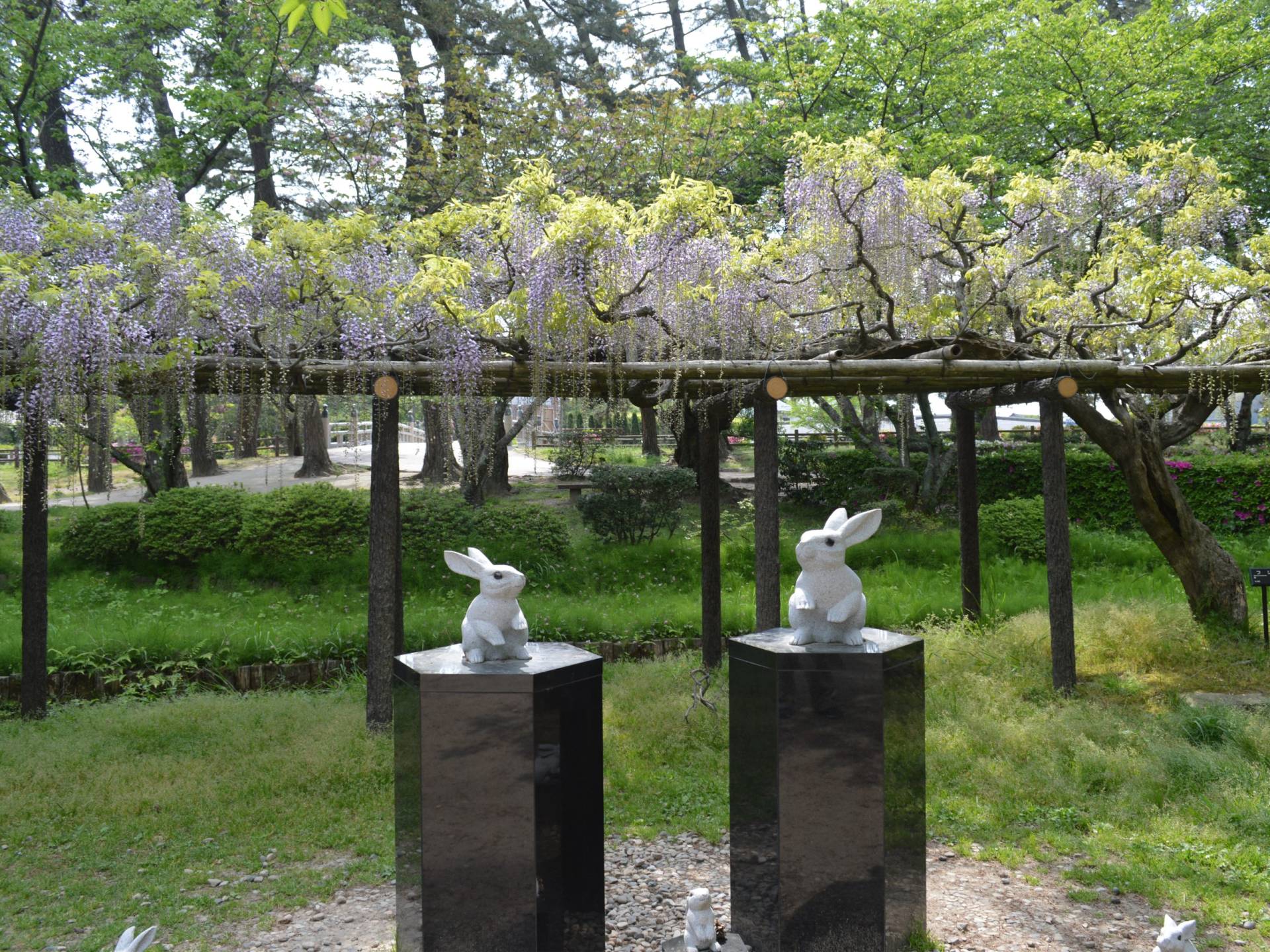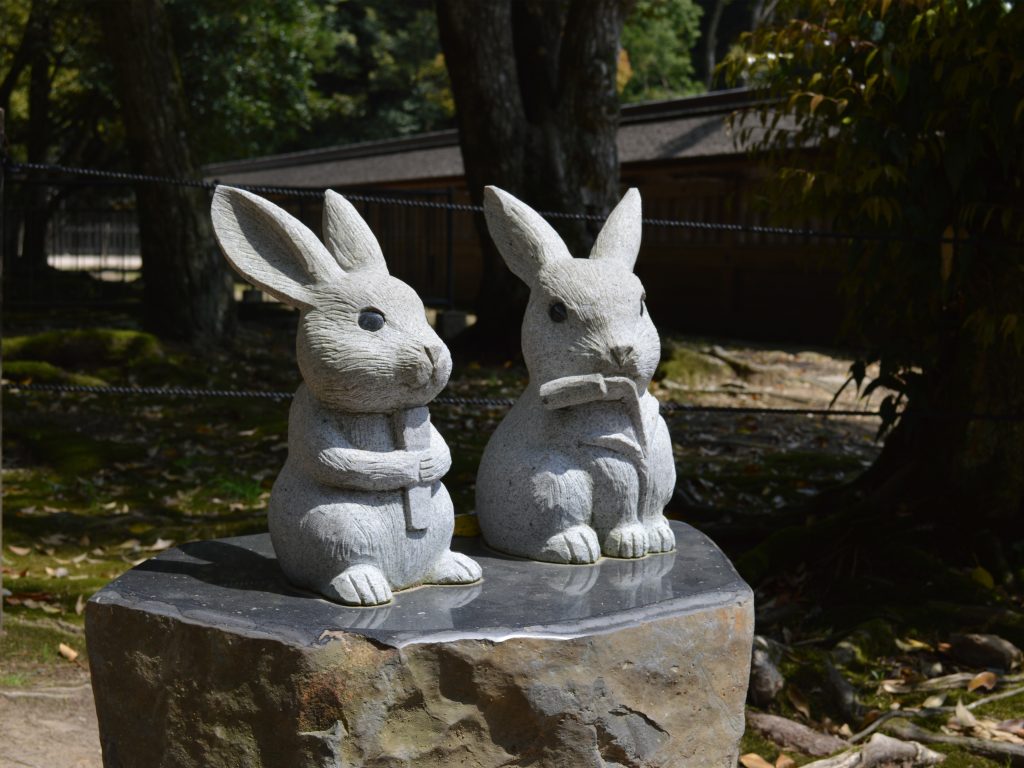 「だいこくさま」として慕われる大国主大神様には古事記で「因幡の素兎(白兎)」というお話が語り継がれており、そのお話にちなんだうさぎさん達の石像が境内のいたる所でお出迎えをしてくれます。