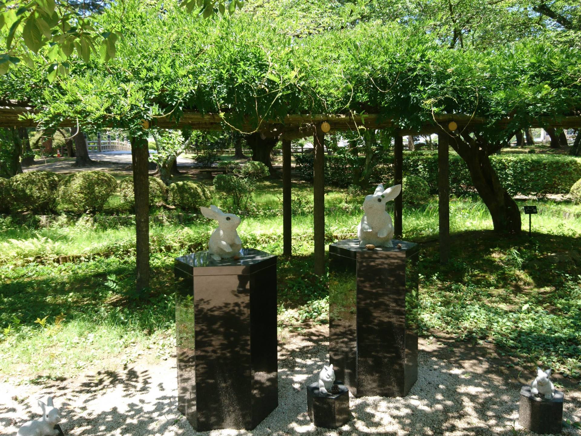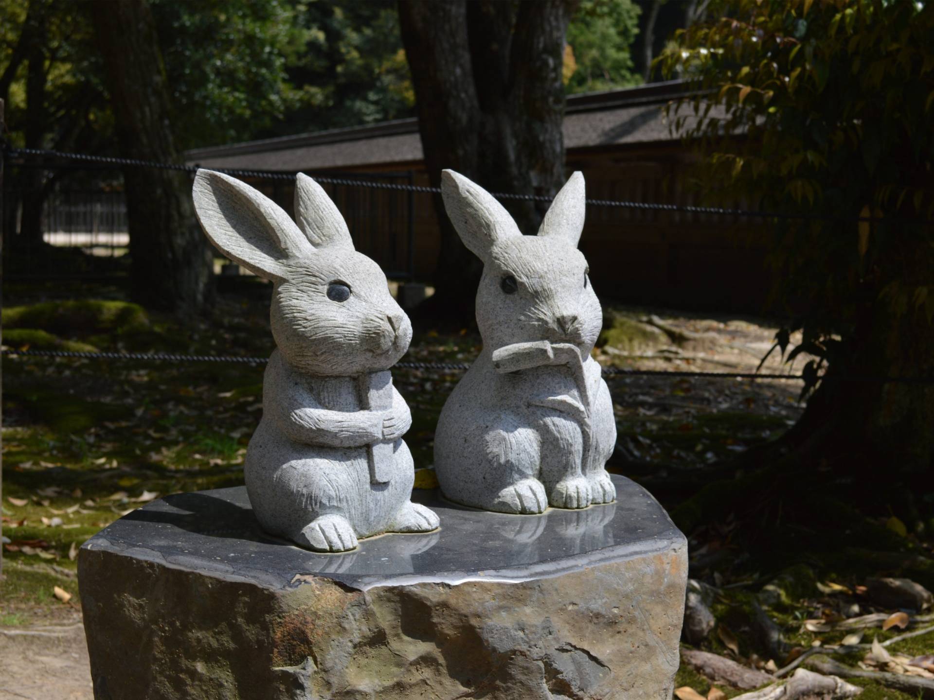 うさぎさん達は主に、御本殿裏、神苑、神楽殿周辺、祖霊社の周辺にて皆さんを待っているため、勢溜の大鳥居(正面)からまっすぐに拝殿へお参りし、そのまま神楽殿へと向かってしまうと出会うことができませんので、ぜひ境内をお散歩し表情豊かなうさぎさん達とふれあってみてください!