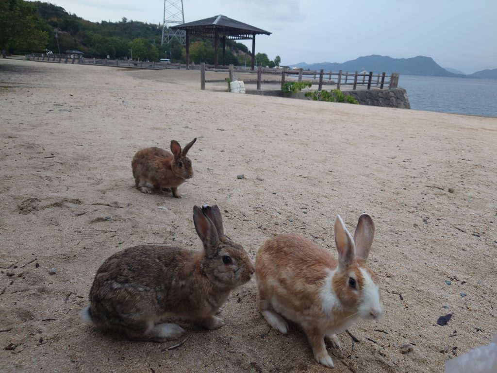 また、うさぎ耳集音器からさらに左手奥の方(ビジターセンターの裏手)へ回ると多くのうさぎさんが暮らしているエリアがあります。